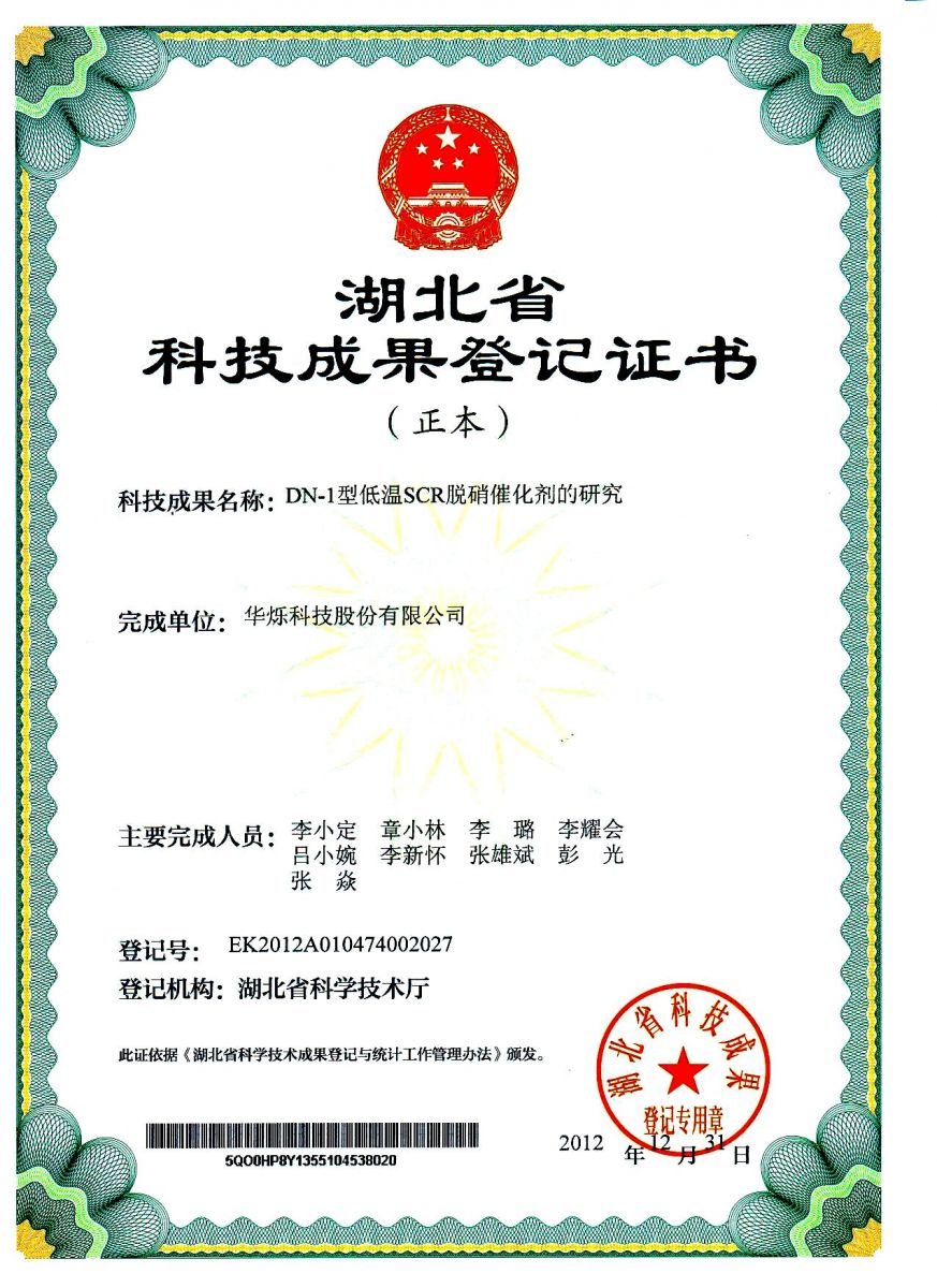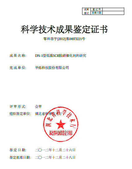 DN-1型低溫SCR脫硝催化劑的研究